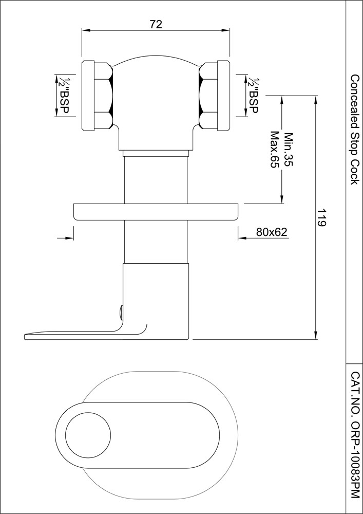 In-wall Stop Valve with Adjustable Wall Flange, Size 15 mm (With Exposed and In-wall parts)